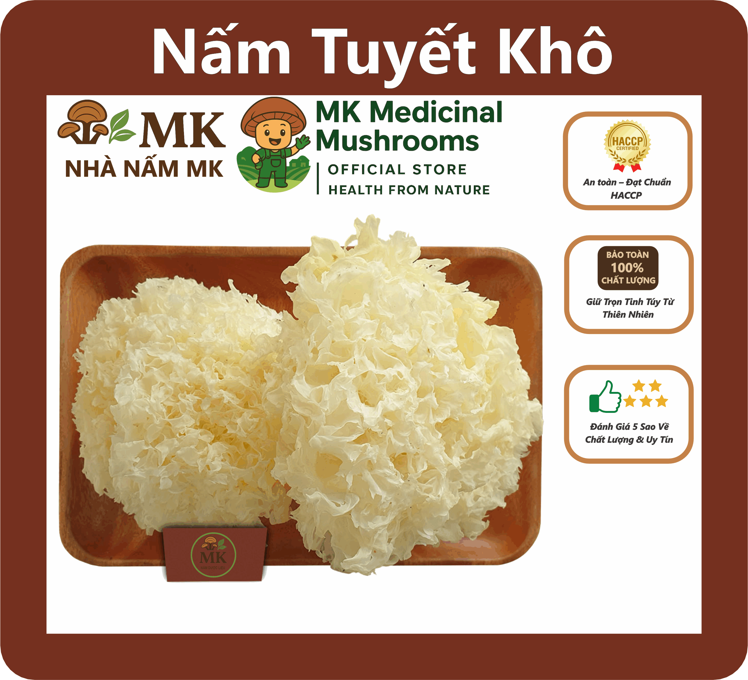 NẤM TUYẾT KHÔ – NẤM NGÂN NHĨ KHÔ (NẤM MÈO TRẮNG) – NẤM DƯỢC LIỆU MK – DƯỠNG DA, BỔ PHỔI, THANH MÁT CƠ THỂ, TỐT TIM MẠCH